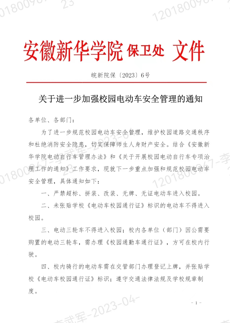 关于进一步加强校园电动车安全管理的通知