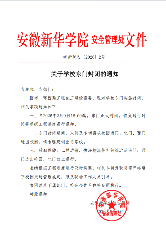关于学校东门封闭的通知