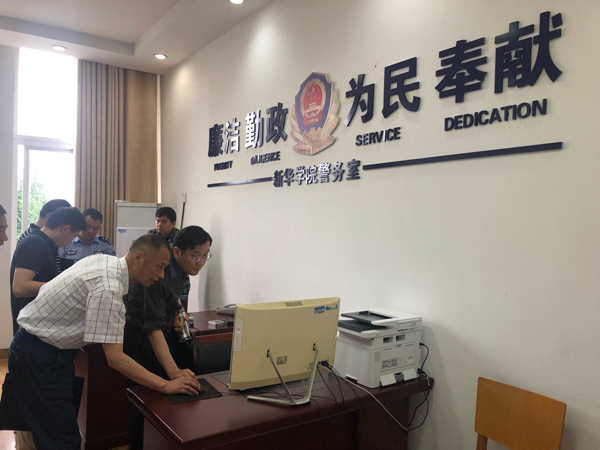 检查组首先听取了工作汇报,保卫处副处长仇陶从学校高度重视警务室建设、警务室软硬件建设情况、警务室建成后工作开展情况等三个方面向检查组汇报了beat365网登警务室建设情况。高新分局领导、高新派出所领导分别汇报了依托警务室进校开展工作情况。而后检查组实地核查了警务室硬件投入、各项等统计台账和制度建设情况。