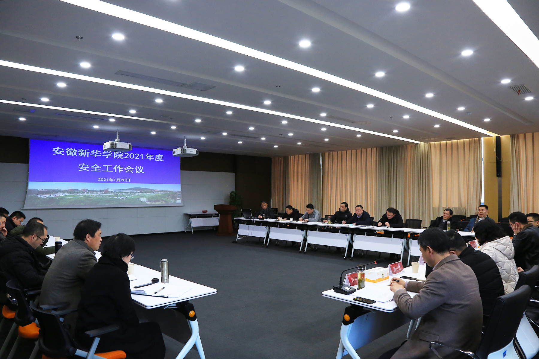 首先,保卫处副处长仇陶代表学校安全工作委员会作2020年度安全工作总结及2021年度安全工作部署,报告总结了2020年安全工作取得的成效,分析了校园的安全形势,重点部署了2021年学校安全稳定工作。汪俊东传达了上级教育主管部门关于校园疫情防控的要求,结合学校实际布置了学校寒假疫情防控工作,并对学校寒假值班工作提出具体要求。
