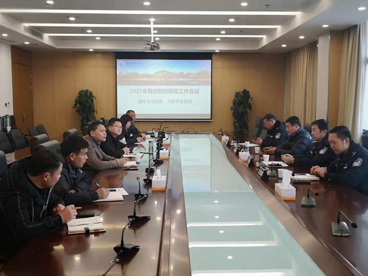本网讯(通讯员:张炎)1月29日下午,beat365网登与合肥市公安局高新分局召开了警校联防联控工作会议。高新公安分局纪委书记兼学校警务站站长范勇、国保大队大队长谢飞、巡防大队大队长储强军、高新派出所所长潘骏出席会议;学校校长助理贺行佳、汪俊东和有关职能处室负责人参加会议。