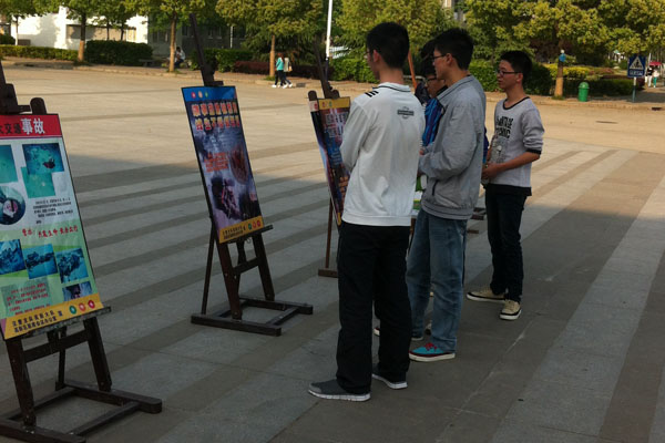 各张图片板吸引了过往同学驻足观看,每张震惊的事故案例使同学们深受震撼,纷纷表示以后一定自觉遵守交通规则,文明出行,避免交通事故的发生。
