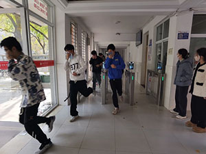 12:09分,随着急促的警报声响起,2023年beat365在线体育官网登录入口消防应急疏散演练拉开了帷幕。26号学生公寓楼约700余名学生每人拿着湿毛巾捂住口鼻,在疏散引导员的指挥下,紧张有序的向宿舍楼外疏散,3分钟内宿舍楼所有人员全部疏散到安全集结点。