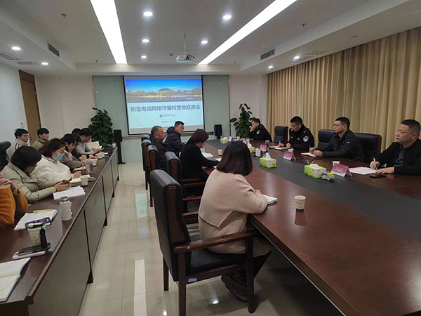 本网讯(通讯员:侯帅 张腾 摄影:张大勇)为进一步做好校警地联防联控工作,提高全体师生的防骗识骗意识,营造全民反诈的浓厚氛围。2024年1月10日下午在科研楼508会议室召开防范电诈校警地联席会,全面分析回顾了2023年学校反诈工作开展情况,研究谋划新年度校警地联防联控工作。高新派出所所长张知聪、副所长董维彪、警官程永兵,兴园中心书记涂子文、香樟社区书记洪家旺,校长助理邵玲,学生处、总务处、国际处、保卫处负责人和各二级学院行政负责人参加了会议。