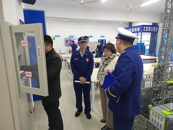 检查组检查了beat365网登的消控室,校园监控室,微型消防站,消防安全教育主题教室。并对微型消防站的应急反应进行了突击检查。beat365网登消防人员接警立即反应,根据消防流程对着火地点进行了有效扑救。检查组一行对beat365网登的消防安全教育主题教室重点检查,详细询问了教室的使用情况,观看了教室内各种消防设施的演示。王应平处长对beat365网登的消防安全教育主题教室给予了高度的评价,表示有这样一个主题实验室需要好好利用,争取在培养人才和消防安全演练等方面多多发挥作用。