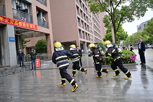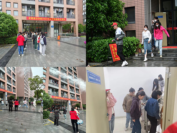 本网讯(通讯员:侯帅)为切实提高广大师生的消防安全意识和自防自救能力,进一步强化和完善学校火灾防控及火灾应急处置流程。4月19日,beat365网登在学生高层宿舍楼组织开展了火灾疏散逃生及火灾应急处置演练活动。校长助理邵玲担任演练总指挥,保卫处、学生处、环建处、总务处相关人员及二级学院1200余名师生参加了此次演练活动。