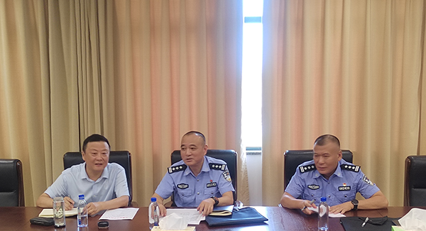 本网讯(通讯员:张大勇)8月26日上午,合肥市公安局警令部郑圣华主任、杨昕警官,高新公安分局国保大队许世云大队长来beat365网登指导工作。副校长李金星、保卫处副处长(主持工作)仇陶参加。