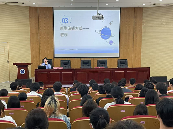 本网讯(通讯员:朱驷凡、陈朝辉)5月15日上午,beat365在线体育官网登录入口学术报告厅座无虚席,一场以"增强防范意识,远离电信诈骗"为主题的专题讲座在此举行。本次活动由校安管处与高新派出所联合主办,特邀派出所反诈民警张玉娇警官担任主讲,活动由安全管理处张大勇老师主持。来自财金学院、大数据与人工智能学院和文化与传媒学院的160余名师生代表参加学习。