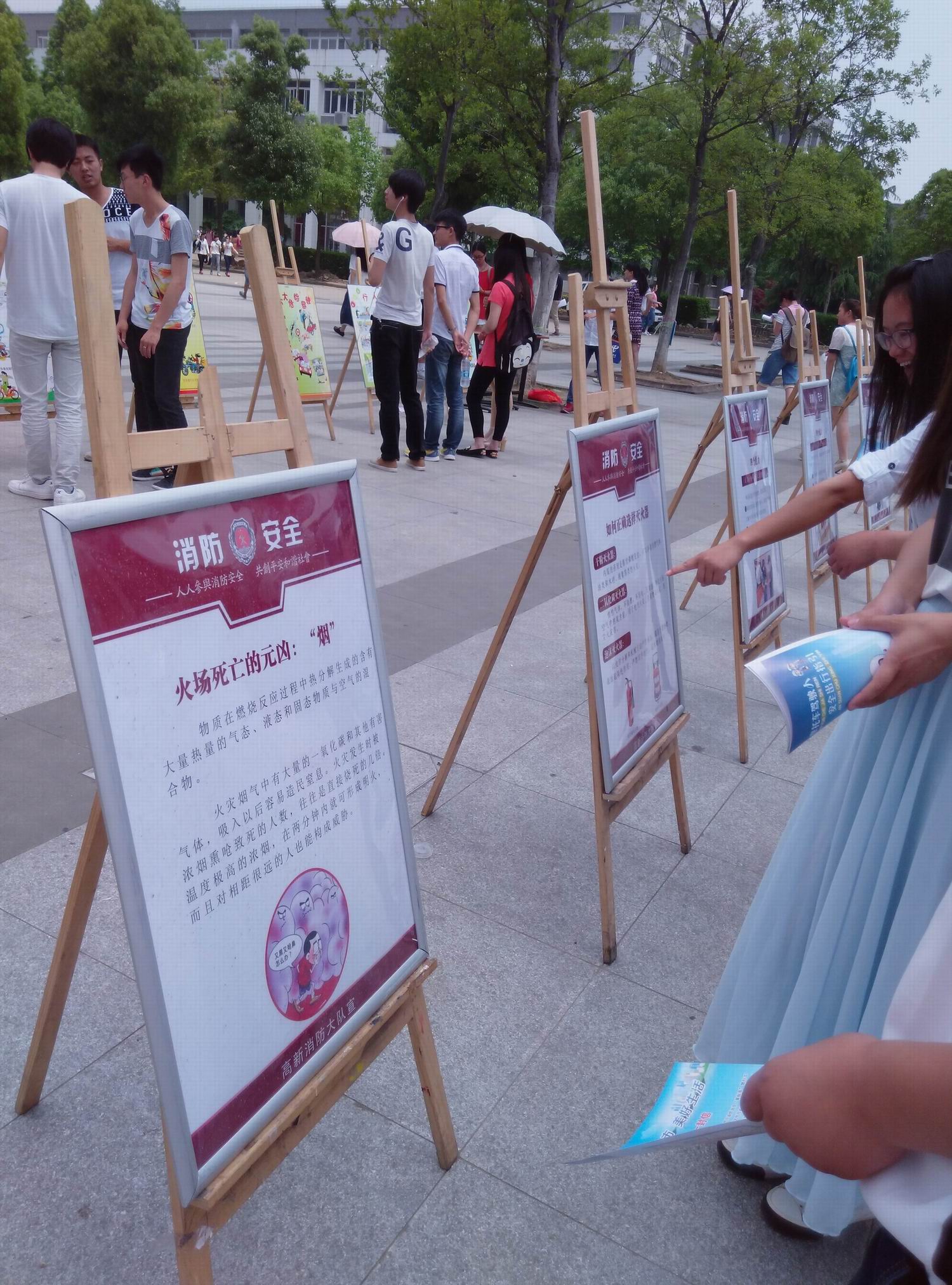 本次活动主要展示了火灾的预防、灭火器材使用、消防四个能力建设、交通安全法规、交通事故的危害、案例等内容,吸引了众多学生前来学习。