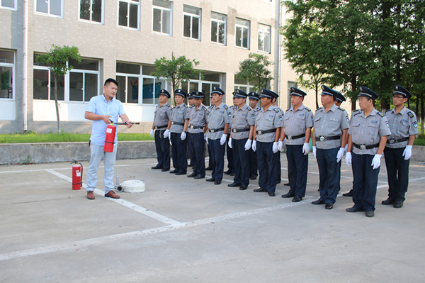 随后,保卫处结合目前社会安全形势及保卫人员需具备的专业技能,分别进行了队列训练、防爆训练、消防设施、设备培训、灭火演练等训练。