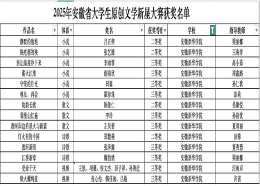 - 2025-12-08文化与传媒学院学子在2025年安徽省大学生原创文学新星大赛中喜获佳绩