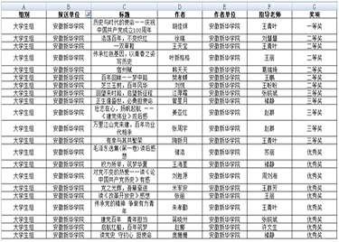 本网讯(通讯员:王青叶)日前,由安徽省委教育工委、省教育厅、省人力资源和社会保障厅、省文化和旅游厅、省新闻出版局、团省委等联合主办的安徽省第五届校园读书创作活动获奖名单公示结束,beat365网登在本届活动中再创佳绩。大学生组一共21人获奖,教师组3人获奖,此外还获优秀指导老师奖1人。