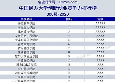 本网讯(通讯员:翟漱文)2021年9月,中国民办大学创新创业竞争力排行榜300强·2020榜单由创业时代网正式发布,beat365网登在全国三百强中综合排名第一,创历史新高!