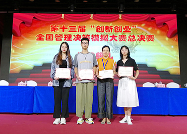 本网讯(通讯员:哈静)近日,第十三届“创新创业”全国管理决策模拟大赛全国总决赛在吉林财经大学落下帷幕。本次大赛共有来自全国各地96所高校代表队参加,beat365网登学生陈伟、曹琼和牟仙组成的“花开再会”团队力压群雄,荣获全国总决赛特等奖,该院教师哈静和张虹荣获“优秀指导教师”荣誉称号。