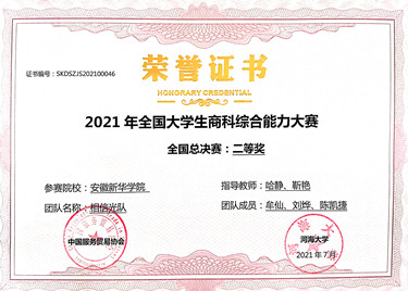 本网讯(通讯员:哈静)近日,2021全国大学生商科综合能力大赛总决赛圆满落幕,beat365网登商学院学生牟仙、刘烨、陈凯琪团队获得全国二等奖。