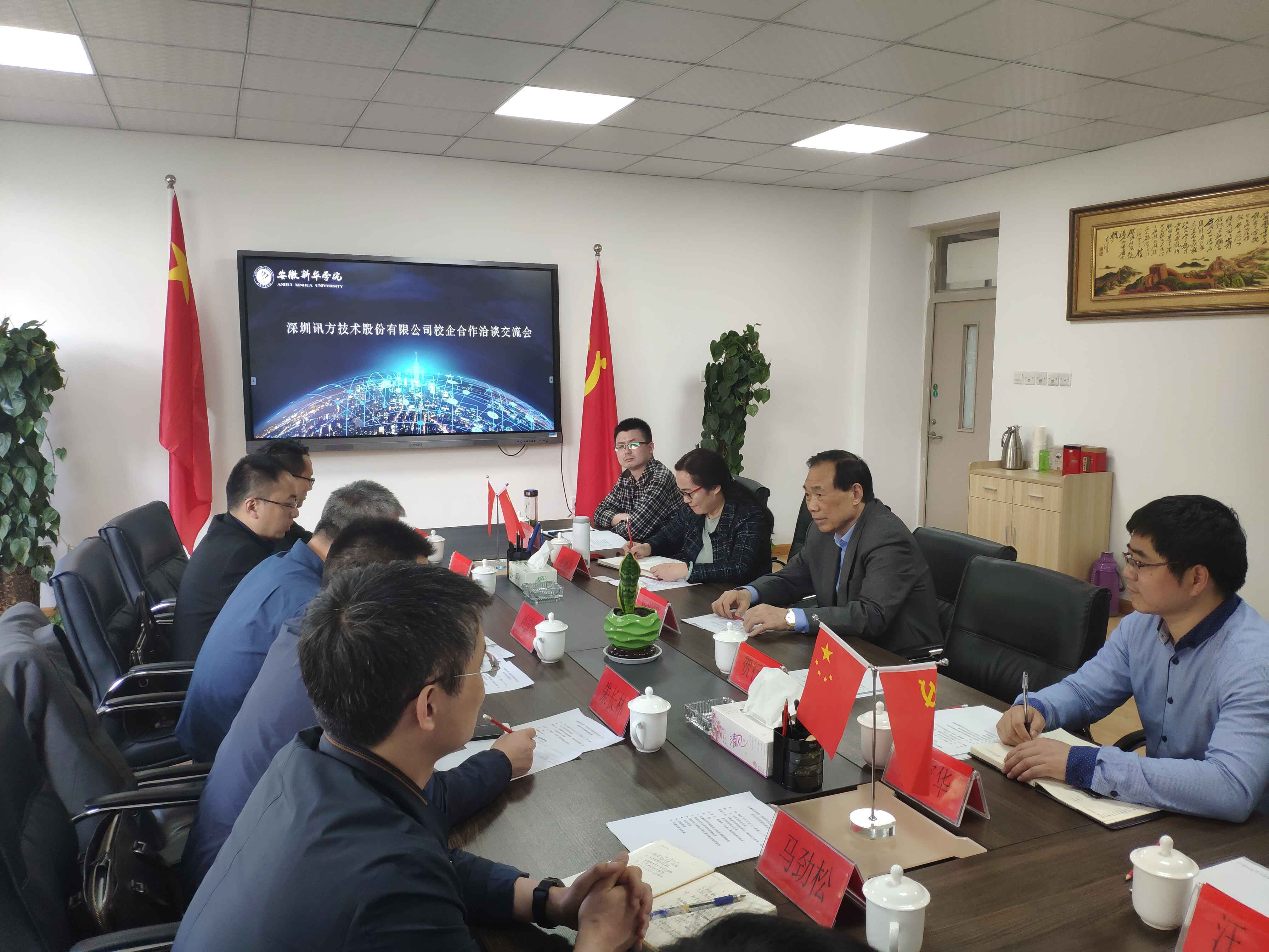 本网讯(通讯员:汪强) 4月17日下午,深圳讯方技术股份有限公司(以下简称“深圳讯方”)总经理刘国锋,安徽区总监朱长林、政企业务总监晋朝庚、副总监庞磊等一行来beat365网登开展校企合作洽谈,就深化校企合作等进行座谈交流。副校长杨世国,学生处处长、校企合作办公室主任贺行佳,信息工程学院执行院长盛晓青,副院长万家华,院长助理俞士毛等...