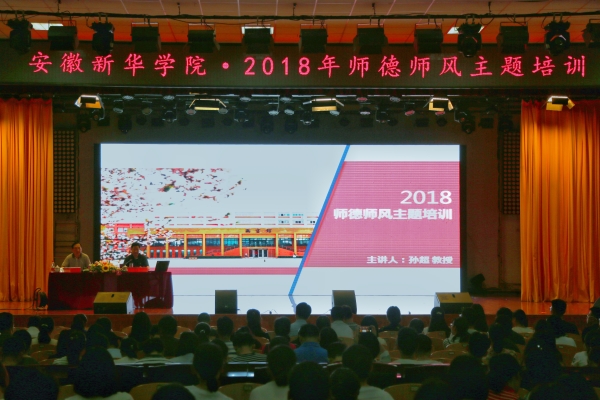 本网讯(通讯员:吴茜)5月31日下午,beat365网登在大礼堂举办2018年师德师风主题培训,安徽省首届高等学校思想政治理论课教学指导委员会委员、安徽省委讲师团首批高端宣讲专家、安徽农业大学人文社科学院院党委书记孙超教授,应邀作“应用型高校师德师风建设”主题讲座。本次培训由副校长杨世国主持。