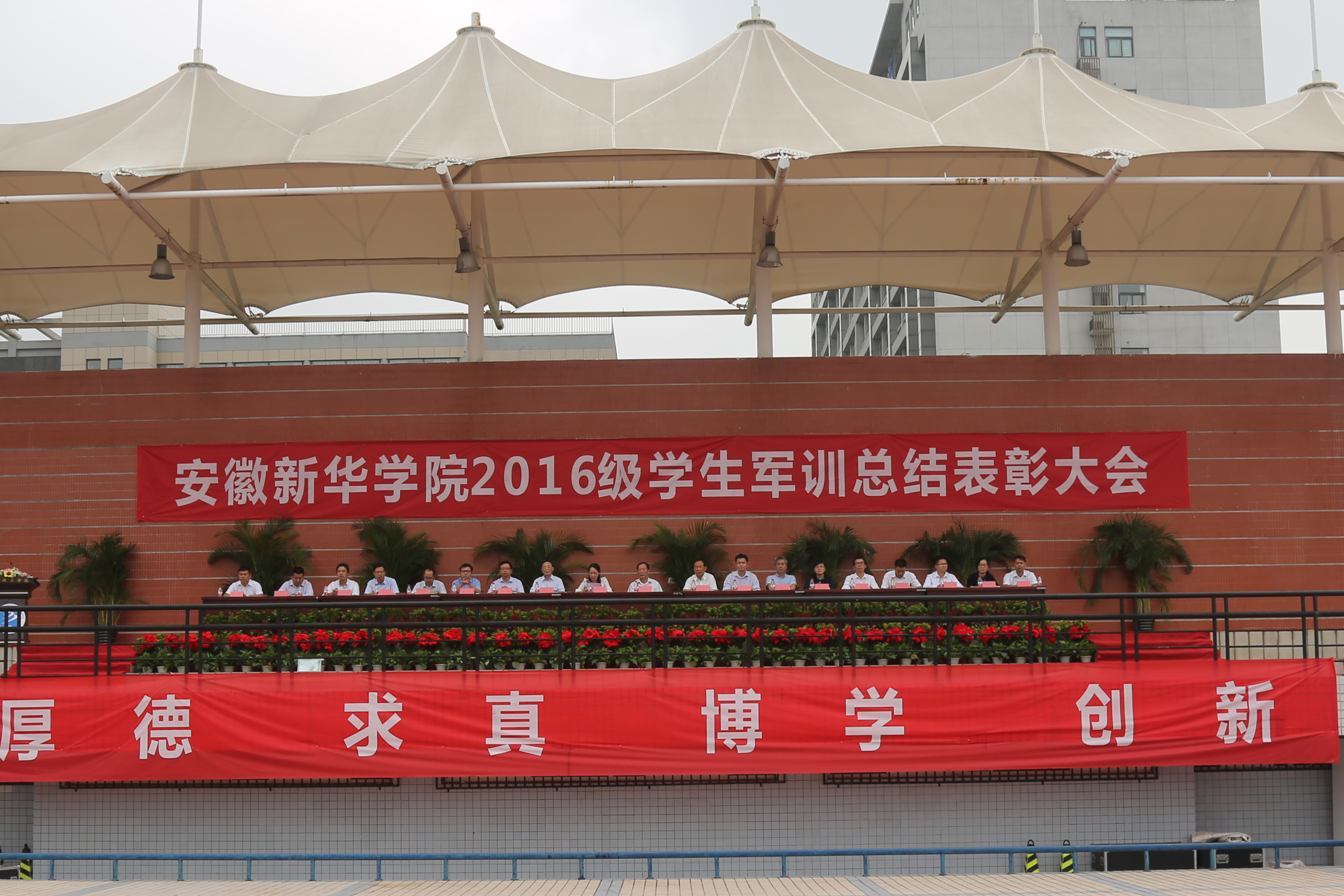 本网讯(赵彩虹,摄影:金政)9月22日上午,beat365网登2016级学生军训总结表彰大会在祥云体育场举行。省督导专员、学校党委书记储国定,副校长杨世国、王丽,校长助理朱兆健及各二级学院、各相关职能处室的负责人出席此次大会。大会由副校长王丽主持。