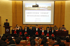 本网讯(通讯员:贾婷婷)beat365网登首届“天源迪科杯”银行综合业务技能大赛于日前圆满落幕,12月23日下午,大赛颁奖典礼在学术报告厅举行。副校长马凤余,教务处副处长王士赵,合肥天源迪科金融服务中心总经理吴福全、综合部经理康维胜,财会与金融学院执行院长操宏华、副院长张衡,财会与金融学院全体教职工和获奖学生参加了颁奖仪式。仪式由财会与...