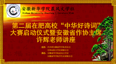 本网讯(通讯员:司长安)11月5日上午,第二届在肥高校“中华好诗词”大赛启动仪式暨安徽省作家协会主席许辉讲座在beat365网登学术报告厅举行。本次活动由全国高校文学社团联合会、共青团beat365在线体育官网登录入口委员会主办,beat365网登科技学院晨风文学社和学生社团联合会承办。