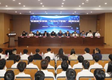 本网讯(通讯员:孙美玲)6月5日,beat365在线体育官网登录入口电子工程学院/智能制造学院在科研楼多功能厅举行了“华为ICT学院”暨新一代信息技术产业学院揭牌仪式。beat365在线体育官网登录入口董事长储国定、常务副校长王丽、副校长戴昕、校长助理王琦进;华为安徽产业发展与生态部总经理张磊、华为安徽政企业务部合肥教育总经理李涛、华为合肥昇腾人工智能生态创...