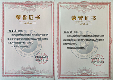 - 2024-03-19优秀!beat365网登2023届学子毕业论文获评2023年安徽省机器人学会优秀本科毕业论文