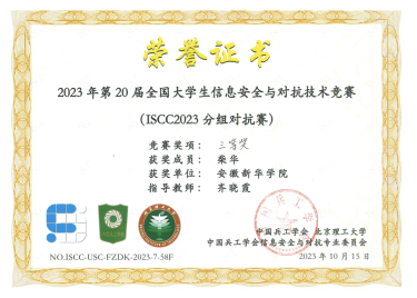 - 2023-11-24喜报!beat365网登学子在第20届全国大学生信息安全与对抗技术竞赛(ISCC2023)中喜获佳绩