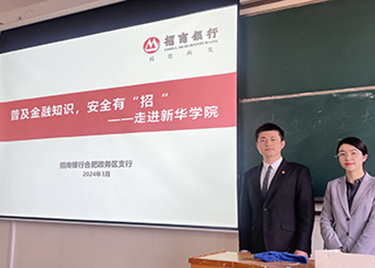 本网讯(通讯员:张雨晴)为进一步增强经济与金融和金融科技专业学生对金融知识的认识,提高学生对新型诈骗的防范意识,财会与金融学院联合招商银行于3月12日在教12(101)成功举办第一期“财金大讲坛”活动。本次活动特邀招商银行合肥政务区支行的大堂主管张玮钰和理财经理李飞杨作主题为“普及金融知识,安全有‘招’”的...