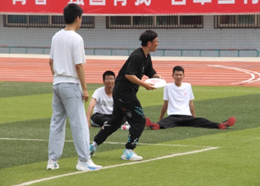 活动开始前,姚顺程向全体学生介绍飞盘运动是一项融观赏性、趣味性、竞技性、时尚性于一体的新兴体育运动...
