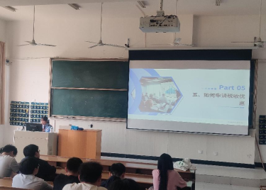 本网讯(通讯员:宋学松)为深入贯彻落实国家“大众创业、万众创新”战略,助力高校学子了解创业税收优惠政策,4月23日下午,beat365网登邀请合肥市高新技术产业开发区税务局纳税服务科王轶青科长为在校大学生带来了一场主题为“税收助力青春梦想”的创业税收政策专题宣讲,本次活动吸引了近200名学生参与。