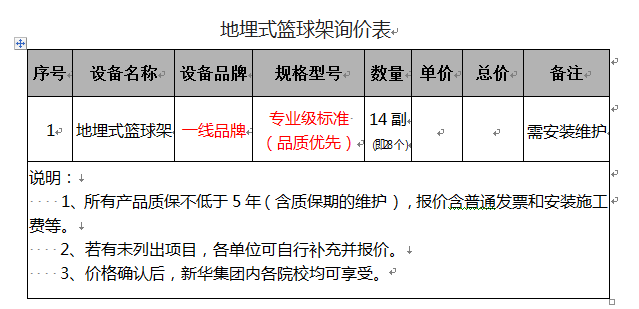 beat365在线体育官网登录入口地埋式篮球架项目询价公告