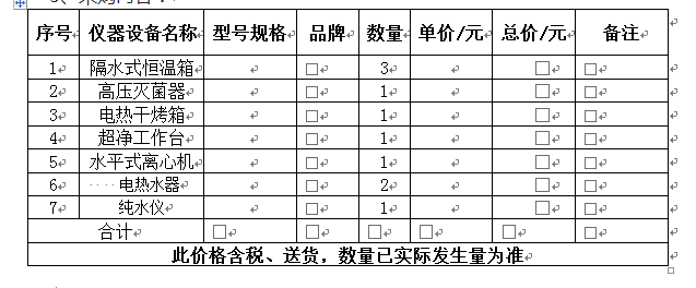 2、履行合同所需的任何项目若未有明确加在所列价款中,该部分有关费用应视作包括在投标报价之内(如运送、开票等全部费用);