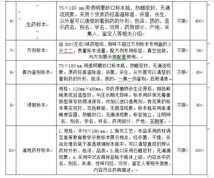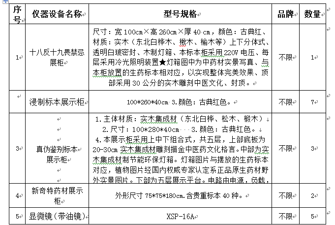 第一部分:药用植物标本实验室(以下清单规格型号、参数仅供参考)