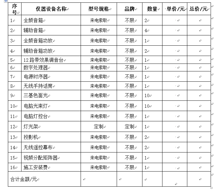 3、招标询价内容:(参数请来电索取)