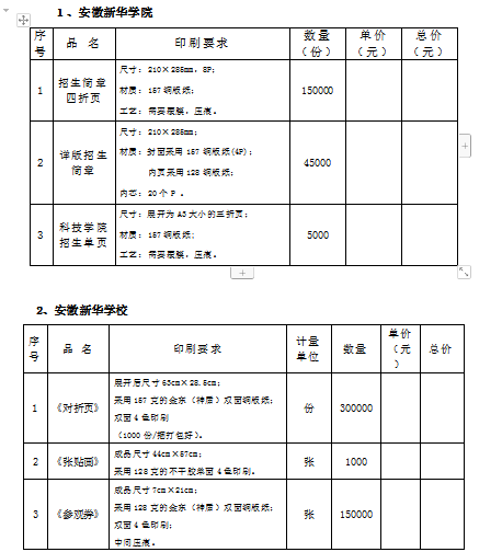 根据招生工作需要,现对:beat365在线体育官网登录入口、安徽新华学校、合肥新华实验中学招生简章项目进行公开询价采购,欢迎符合资质要求并长期从事此类业务的厂家前来洽谈合作。