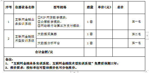二、招标内容:金融综合实验室项目所需物资(不足可自行完善)