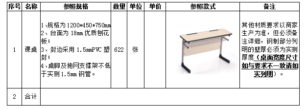 1、项目名称:《beat365在线体育官网登录入口教室课桌》采购项目