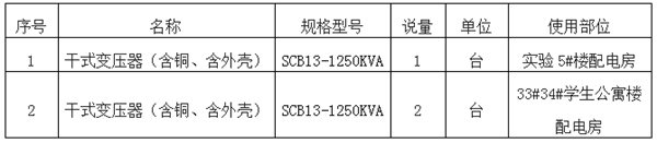 根据建设需要,现对学院配电房干式变压器项目进行公开招标,欢迎全国范围内符合条件的生产商及供应商积极参与。