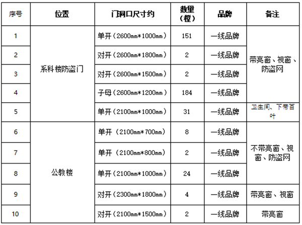 钢质门供货及安装项目采购招标询价公告