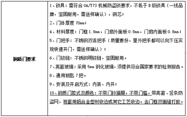 三、钢质门要求(包括但不限于)