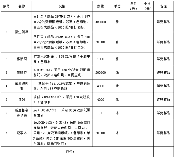 12.按照招标清单中纸张的要求须送小样(铜版纸要求为晨鸣,太阳,金东品牌)。