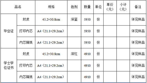 beat365在线体育官网登录入口毕业证、学位证封面及内芯印制招标询价公告