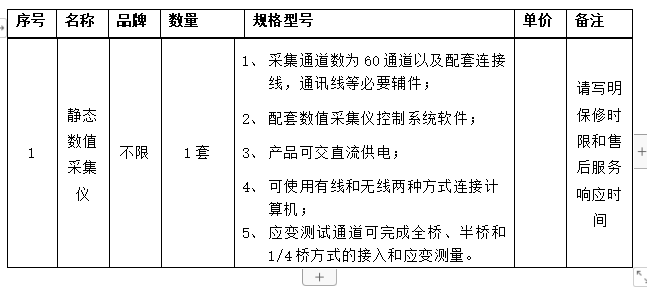 1、项目名称:静态数值采集仪采购项目