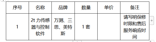 beat365在线体育官网登录入口2t力传感器与控制软件采购询价公告