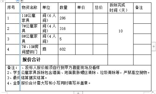 4、中标单位在2个工作日内将学生公寓家具款一次性缴清,同时须缴纳20000元履约保证金后方可开工,中标单位在拆除结束,完成拆除过程中产生的垃圾清理等相关工作后保证金一次性无息退还。