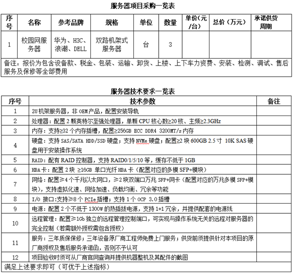 校园服务器采购招标询价公告