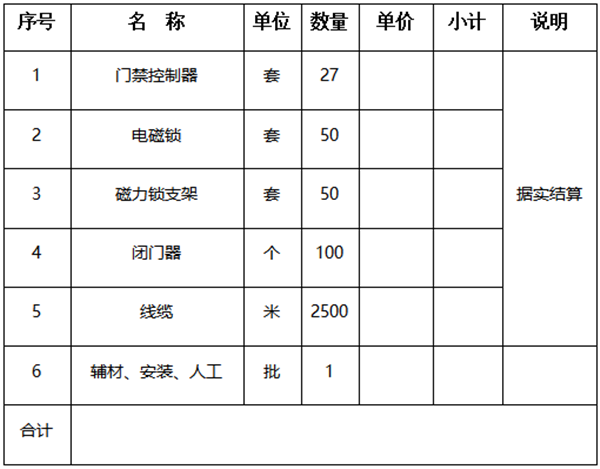 按照学校要求,完成50扇安全出口门的应急门锁装置安装(详见下表)。