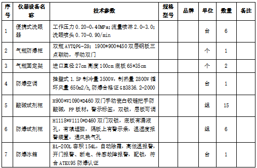 beat365在线体育官网登录入口化学危险品实验室防爆柜、防爆空调等设备采购项目询价公告