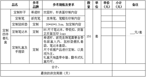 定制四件套礼盒项目询价公告