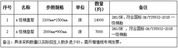 2023年学生公寓物品(棉絮)招标公告
